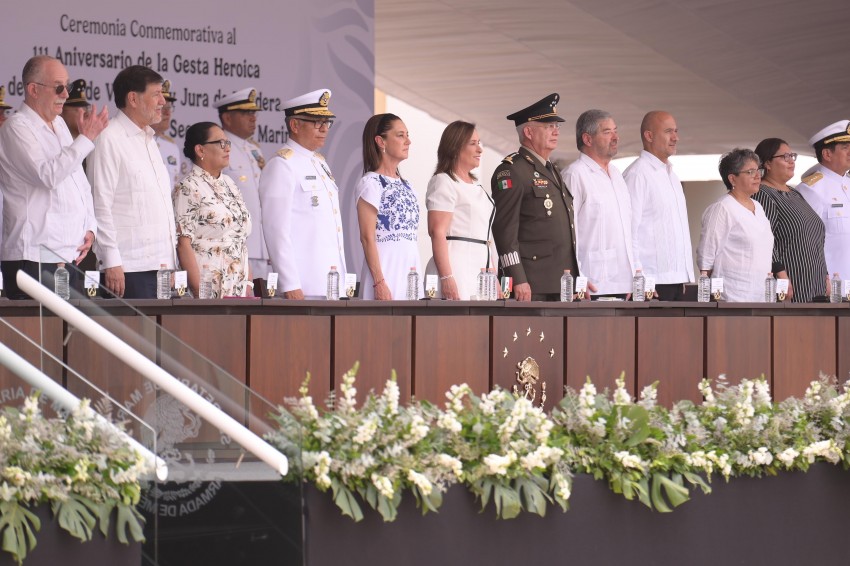 Desde la Heroica Escuela Naval Militar, la gobernadora Rocío Nahle García recibió a la presidenta de México, Claudia Sheinbaum Pardo, quien presidió su primera ceremonia conmemorativa por el 111 aniversario de la Gesta Heroica de 1914, en Defensa del Puerto de Veracruz.