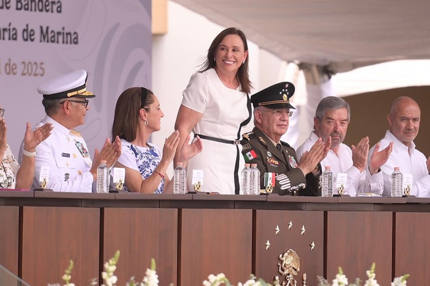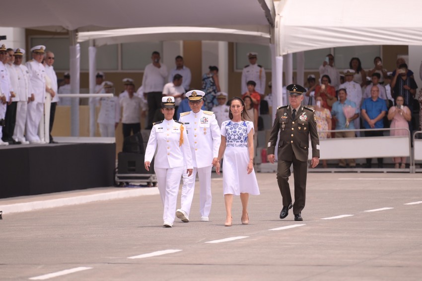 En su carácter de Comandanta Suprema de las Fuerzas Armadas, encabezó el acto solemne de Jura de Bandera, acompañada por los secretarios de Marina, Raymundo Pedro Morales Ángeles, y de la Defensa Nacional, Ricardo Trevilla Trejo.