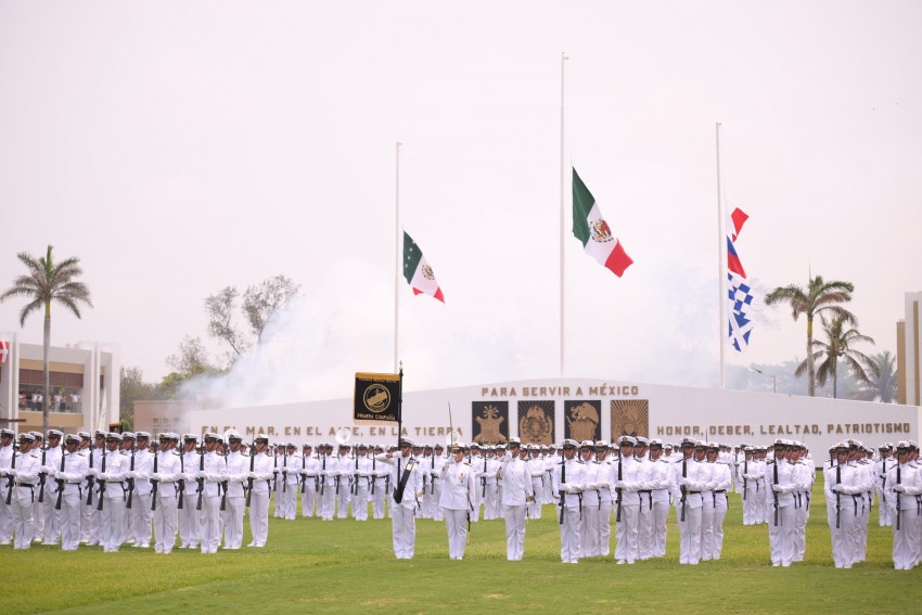 Con profundo respeto, la Jefa del Ejecutivo pasó lista de honor a los cadetes de la Heroica Escuela Naval Militar y del Heroico Colegio Militar, seguida del toque de Silencio interpretado por la banda de guerra y una salva de fusilería.