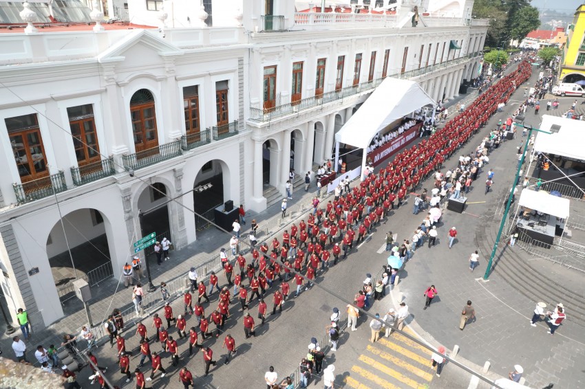 Acto seguido, la Mandataria, acompañada de representantes de los poderes Legislativo y Judicial, del Gabinete y de diversas autoridades, encabezó el desfile conmemorativo en el que participaron 65 mil 998 integrantes de 15 sindicatos y organizaciones; el recorrido se realizó desde la avenida Manuel Ávila Camacho hasta la calle Juan de la Luz Enríquez.