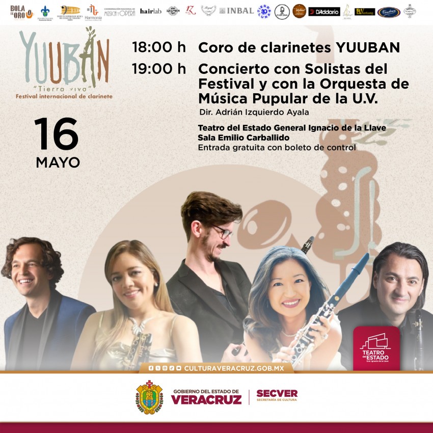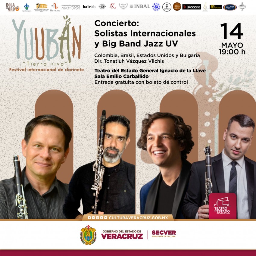 La Secretaría de Cultura de Veracruz (SECVER) invita a la tercera edición del Festival Internacional de Clarinete YUUBAN Tierra Viva, a realizarse en el Teatro del Estado General Ignacio de la Llave, el miércoles 14 y viernes 16, a las 19:00 y 18:00 horas, respectivamente.