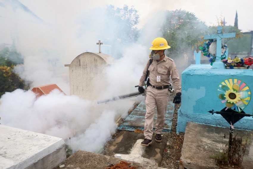 La Secretaría de Salud a través del Departamento de Vectores realiza la termonebulización en panteones y viviendas, particularmente en fechas con alta afluencia, como el Día de las madres.