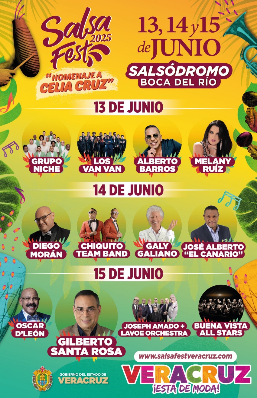 El Gobierno del Estado invita a visitantes nacionales y extranjeros a ser parte de uno de los festivales de salsa más importantes del mundo, que además es gratuito, a realizarse del 13 al 15 de junio en Boca del Río.