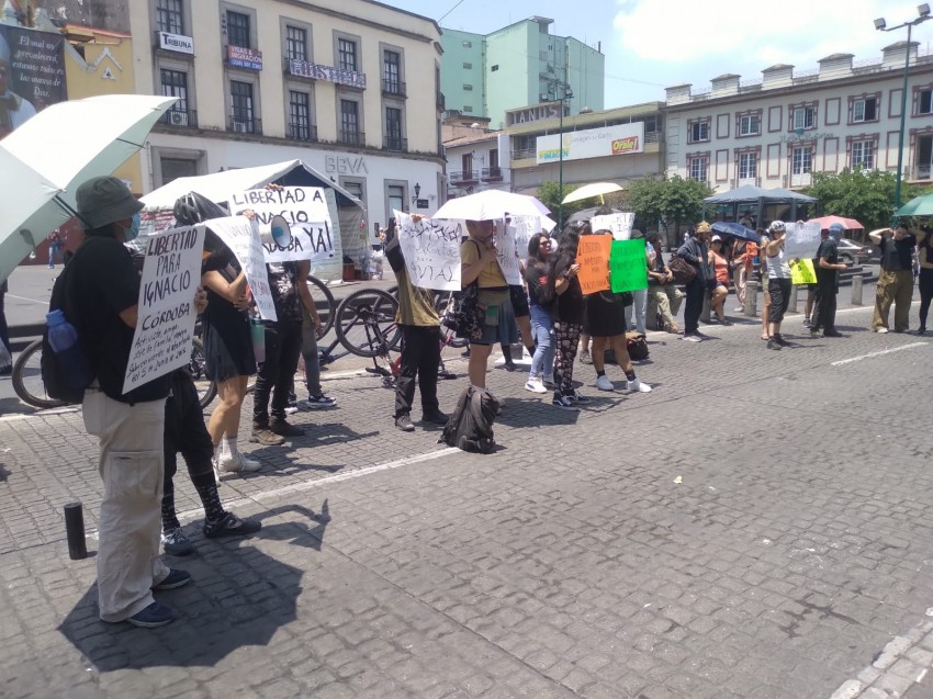 Familiares de Ignacio “Nacho” Córdoba, se manifestaron y realizaron un plantón en la calle de Enríquez, frente a Palacio de Gobierno en el centro de Xalapa, para exigir su liberación, luego de haber sido detenido el día de ayer por una “falta administrativa”, por participar en una protesta por el homenaje al ex gobernador Fidel Herrera Beltrán.