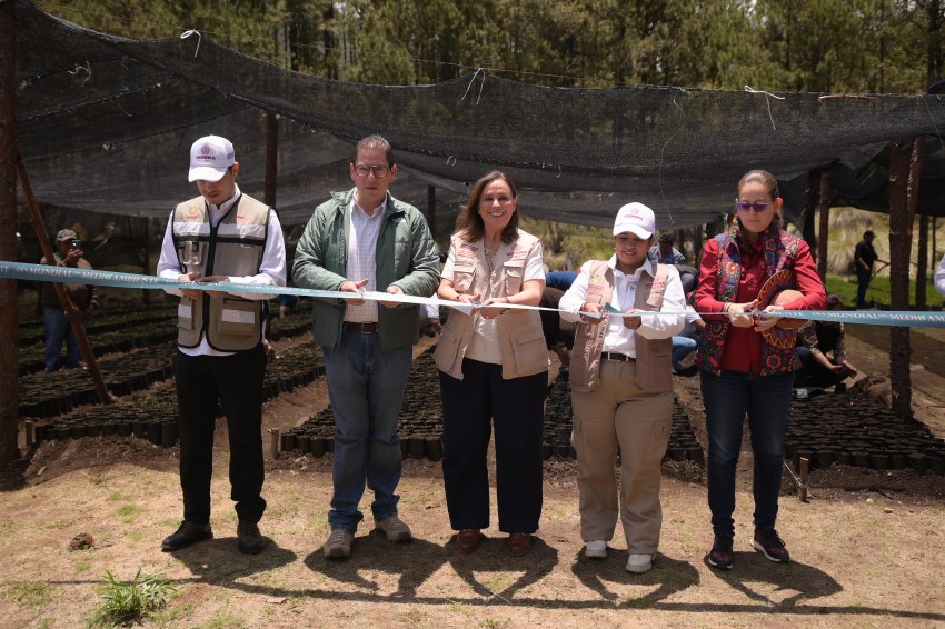Como parte de la jornada, llevó a cabo la entrega simbólica de uno de los 50 mil ejemplares de especies endémicas —entre ellos oyamel, pino blanco, pino chamaite, pino volcanero, pino teocote, pino prieto, pino colorado, enebro y ciprés— que serán sembrados en distintos ejidos de la región.