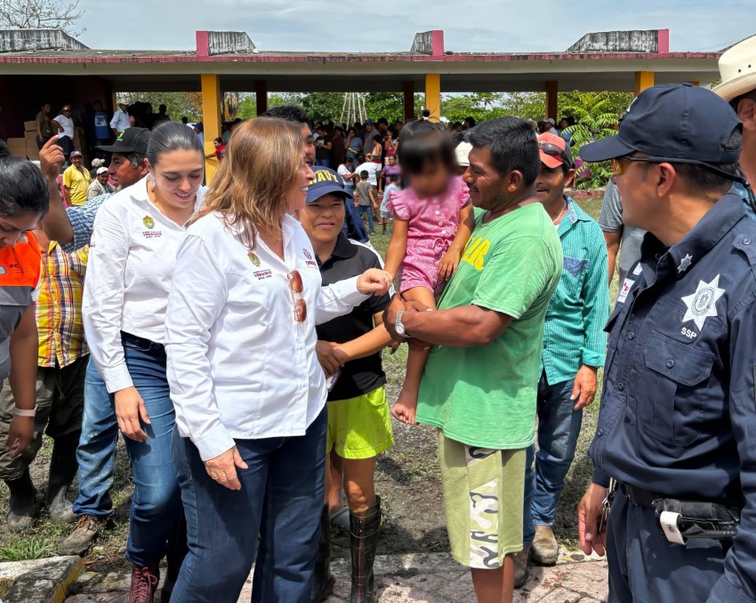 Acompañada por la secretaria de Protección Civil, Guadalupe Osorno Maldonado, arribó a la localidad Tierra y Libertad, donde reiteró a las y los habitantes el respaldo total del Gobierno del Estado ante la contingencia.