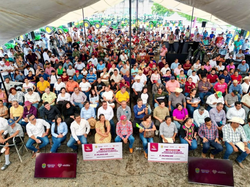 Con la entrega de maquinaria, semilla mejorada y apoyos económicos directos, la gobernadora Rocío Nahle García puso en marcha el Plan para Aumentar la Soberanía y la Autosuficiencia Alimentaria, como parte de la estrategia para fortalecer la producción de maíz y mejorar las condiciones del campo.