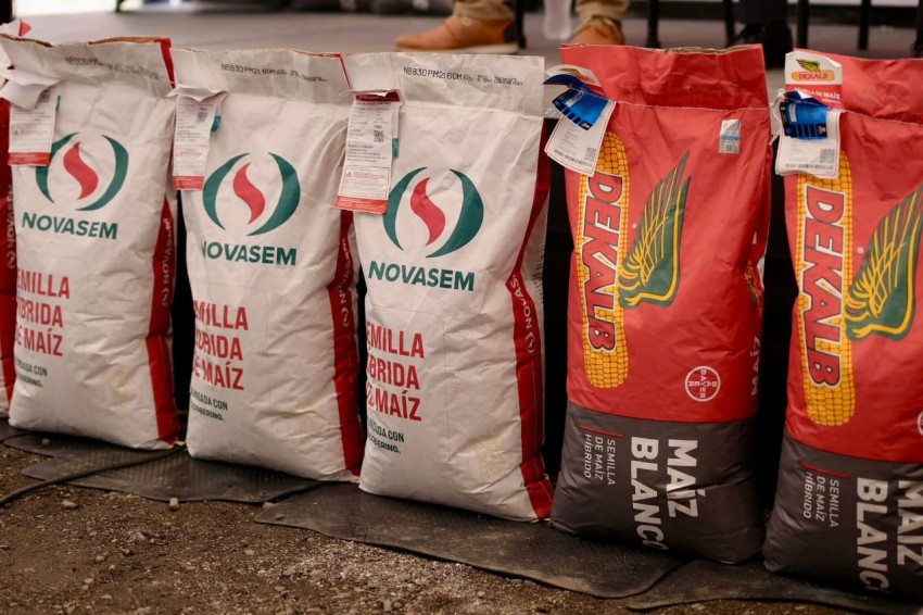 Además, ocho mil 500 bolsas de semilla de maíz blanco híbrido y 593 cheques de apoyo económico otorgados a productores que entregaron su cosecha en los centros de acopio, por un monto individual de 34 mil 902 pesos.