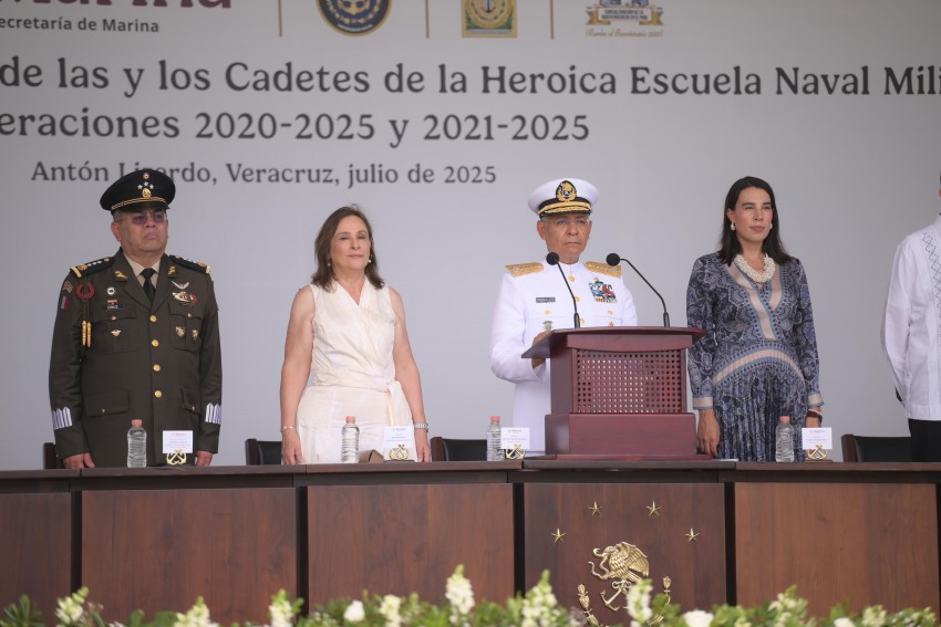 En acto solemne la gobernadora Rocío Nahle García asistió como madrina e invitada de honor del secretario de Marina, Raymundo Pedro Morales Ángeles, a la ceremonia de graduación de las generaciones 2020-2025 y 2021-2025 de la Heroica Escuela Naval Militar, ubicada en Antón Lizardo.