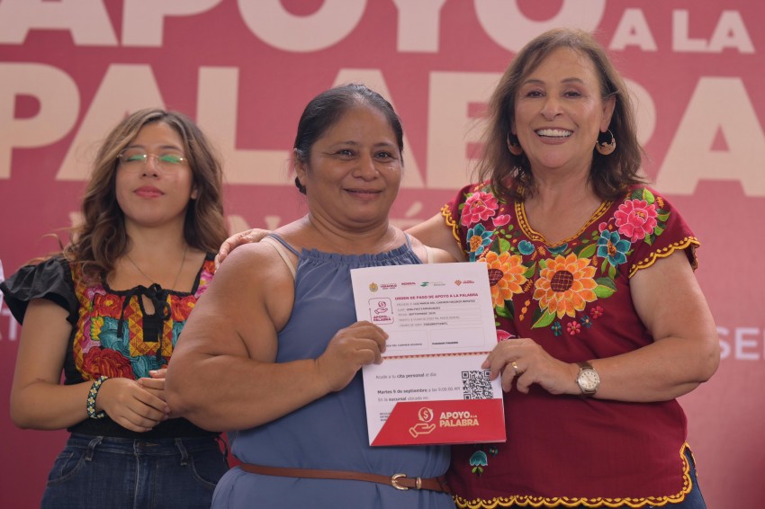 “Gracias por su apoyo, sentimos que nuestro trabajo es valorado y que no estamos solas, contamos con un gobierno que piensa en su gente”, expresó Mireya Domínguez Ceferino al recibir de la gobernadora Rocío Nahle García una de las mil 500 órdenes de pago entregadas del programa Apoyo a la Palabra-Plan México, que benefició a familias de Jáltipan, Mecayapan, Oteapan, Soconusco, Soteapan, Tatahuicapan y Zaragoza.