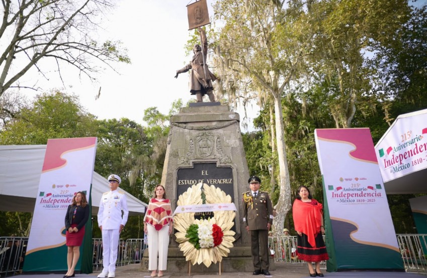 En la conmemoración del 215 aniversario de la Independencia de México, la gobernadora Rocío Nahle García montó guardia de honor ante el monumento a Miguel Hidalgo y Costilla, subrayando que el espíritu de aquella gesta histórica permanece vigente en la Cuarta Transformación que encabeza la presidenta Claudia Sheinbaum Pardo.