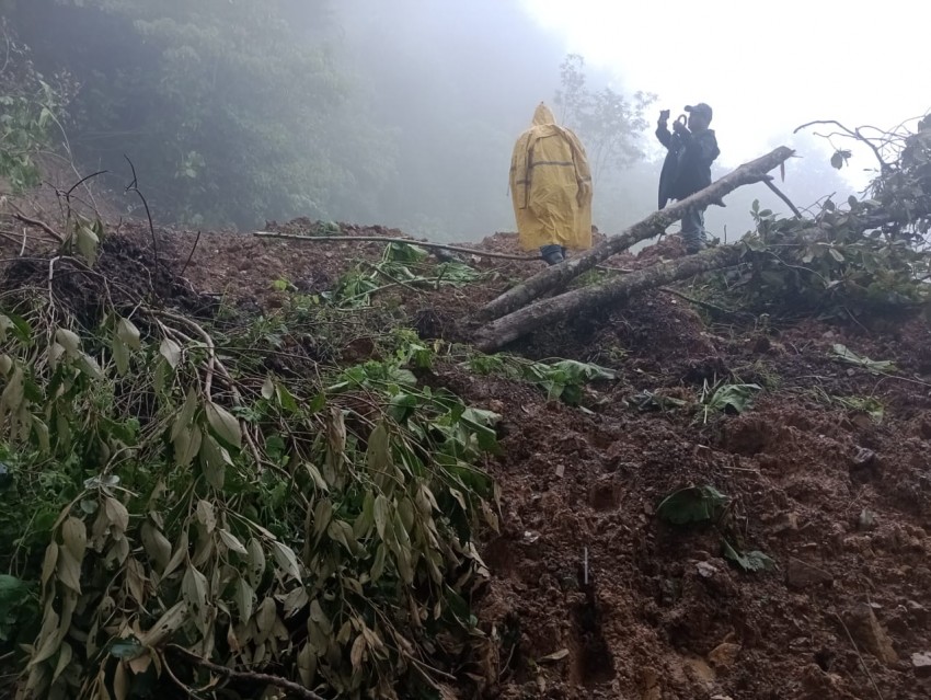 Ayer 4 voluntarios salieron a buscar ayuda, caminando, arriesgando su vida por los acantilados, caminaron ocho horas de ida y ocho horas de regreso a su comunidad, para poder llevar no alimentos, sino unas garrafas de gasolina, para que la única máquina que tienen en estos momentos, pueda quitar lo más pesado de tierra-lodo y puedan tener el acceso ya sea a pie o en motocicleta, porque el camino y los puentes son pérdida total.