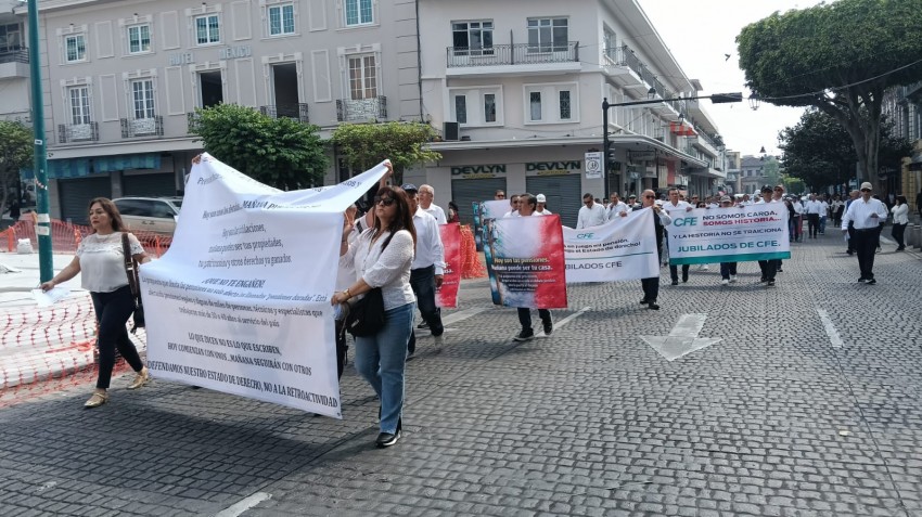 Trabajadores jubilados de la Comisión Federal de Electricidad (CFE) realizaron una manifestación en la capital veracruzana para exigir el respeto a sus derechos adquiridos en materia de pensiones, ante la posible aplicación de la reforma constitucional al artículo 127. La protesta inició en las oficinas de la CFE ubicadas en la calle Allende número 155, los inconformes marcharon al centro de Xalapa, hasta arribar a Palacio de Gobierno, donde pidieron ser escuchados por autoridades estatales.