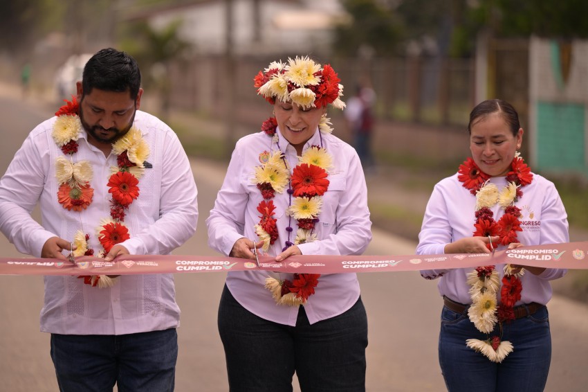 La gobernadora Rocío Nahle García inauguró la pavimentación del tramo Tezonapa–Motzorongo, de aproximadamente 5 kilómetros, ejecutada por la Secretaría de Infraestructura y Obras Públicas (SIOP) y clave para el transporte de caña, café y hule en la región.