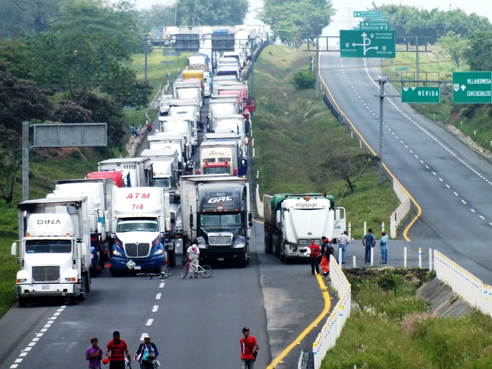 También la carretera federal Minatitlán-Acayucan a la altura de la desviación de Oteapan está bloqueada, lo que mantiene incomunicado el sureste de Veracruz.