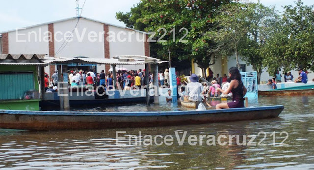 El agua del colosal río Coatzacoalcos inunda una gran cantidad de viviendas, mientras que la población infantil y joven, disfruta de las aguas, nadando, acostumbrados a vivir éste tipo de situaciones.