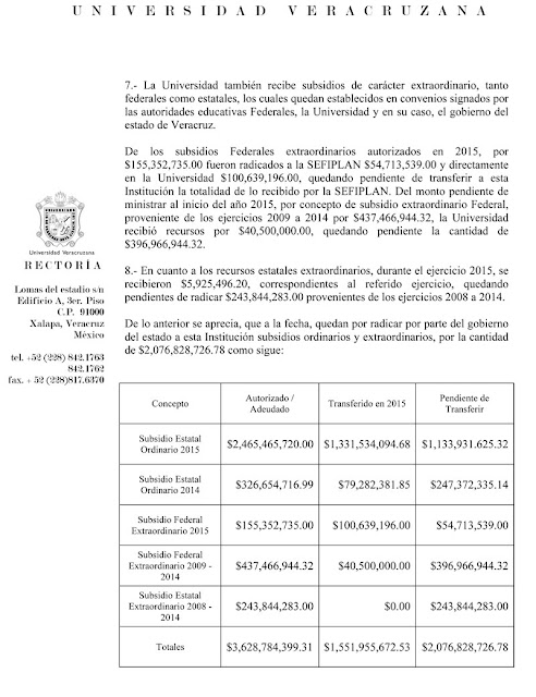 7.- La Universidad también recibe subsidios de carácter extraordinario, tanto federales como estatales, los cuales quedan establecidos en convenios signados por las autoridades educativas Federales, la Universidad y en su caso, el gobierno del estado de Veracruz.