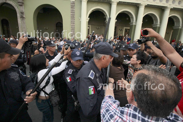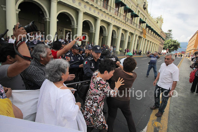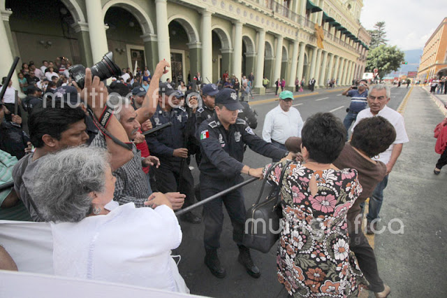 Seguridad Pública desaloja violentamente a jubilados en #Xalapa (Fotogalería)