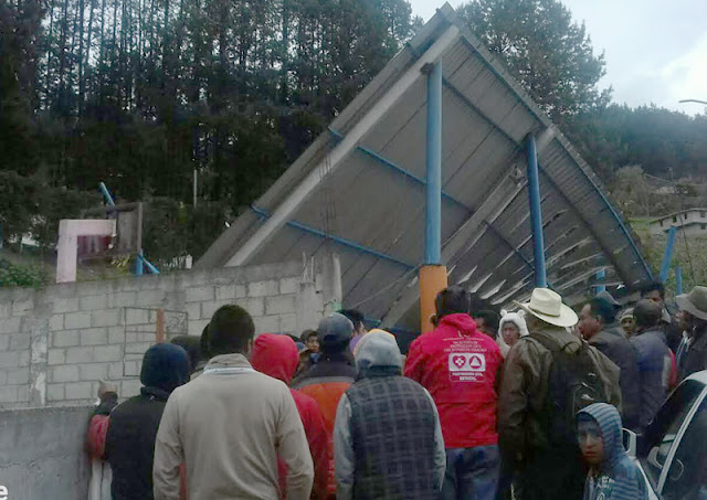 Dijo que en la localidad de Acatitla en la escuela primara Benito Juárez se cayó el domo, así como los techos de los viveros de la misma manera quedaron completamente destrozados.