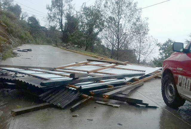 Vientos de más de 80 kilómetros por hora provocaron el cierre de la carretera de Astacinga-Tehuipango debido al destechamiento de 2 casas ubicadas a las orilla de la misma, además de otras 3 que también perdieron sus techumbres.