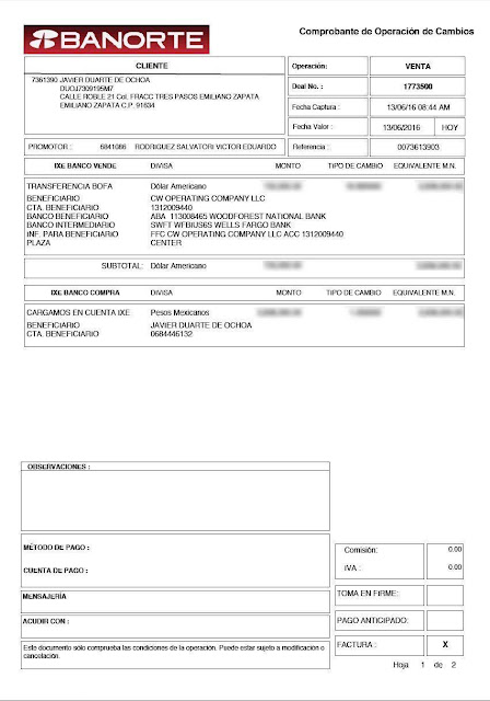 Dichos documentos fueron enviados al presidente de la Comisión Nacional Bancaria y de Valores (CNBV), Jaime González Aguadé; al jefe del Servicio de Administración Tributaria (SAT), Aristóteles Núñez Sánchez; director general de Grupo Financiero Banorte, Marcos Ramírez Miguel, y al Contralor General del Estado, Ricardo García Guzmán.