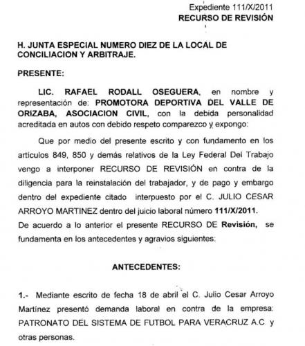 La diligencia consistió en proceder a señalar los bienes de embargo en contra de Promotora Deportiva del Valle de Orizaba, Asociación Civil, para cubrir el pago de laudo laboral a Julio Cesar Arroyo y demás ex trabajadores de dicho club deportivo.