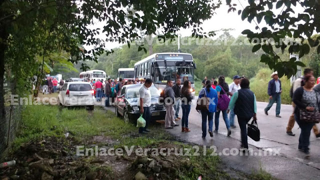 Un grupo de aproximadamente 20 personas, presuntamente maestros, bloquean desde las 6.30 de la mañana la carretera que une a los municipios de Coatepec y Xico, a la altura de la comunidad Zimpizahua.