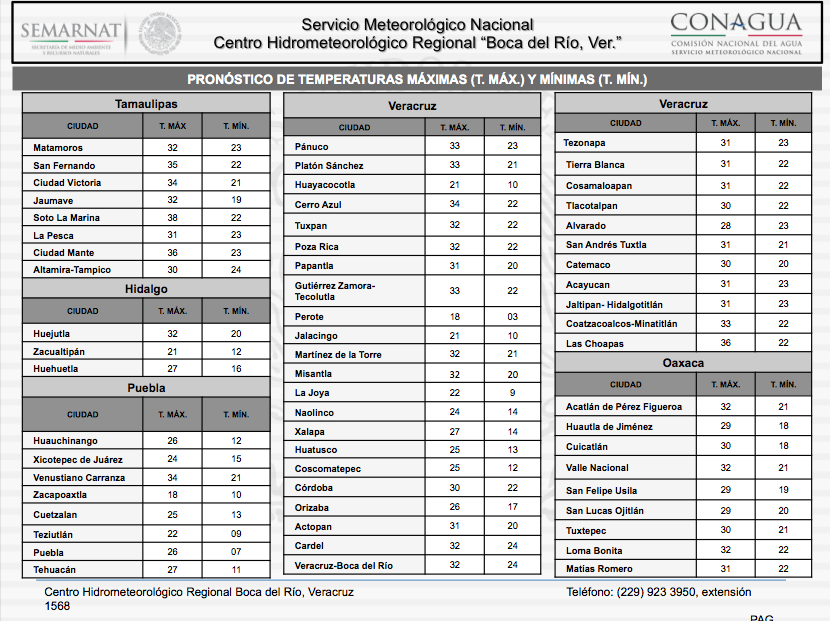 RECOMENDACIONES: Atienda a las indicaciones de Protección Civil. Manténgase atento de las actualizaciones del pronóstico meteorológico.