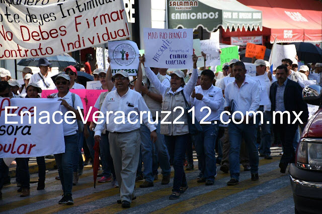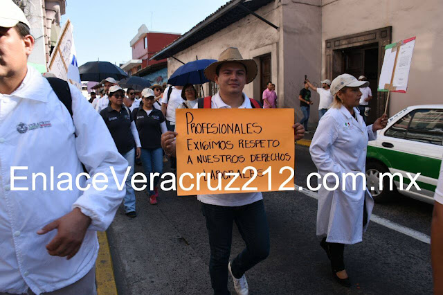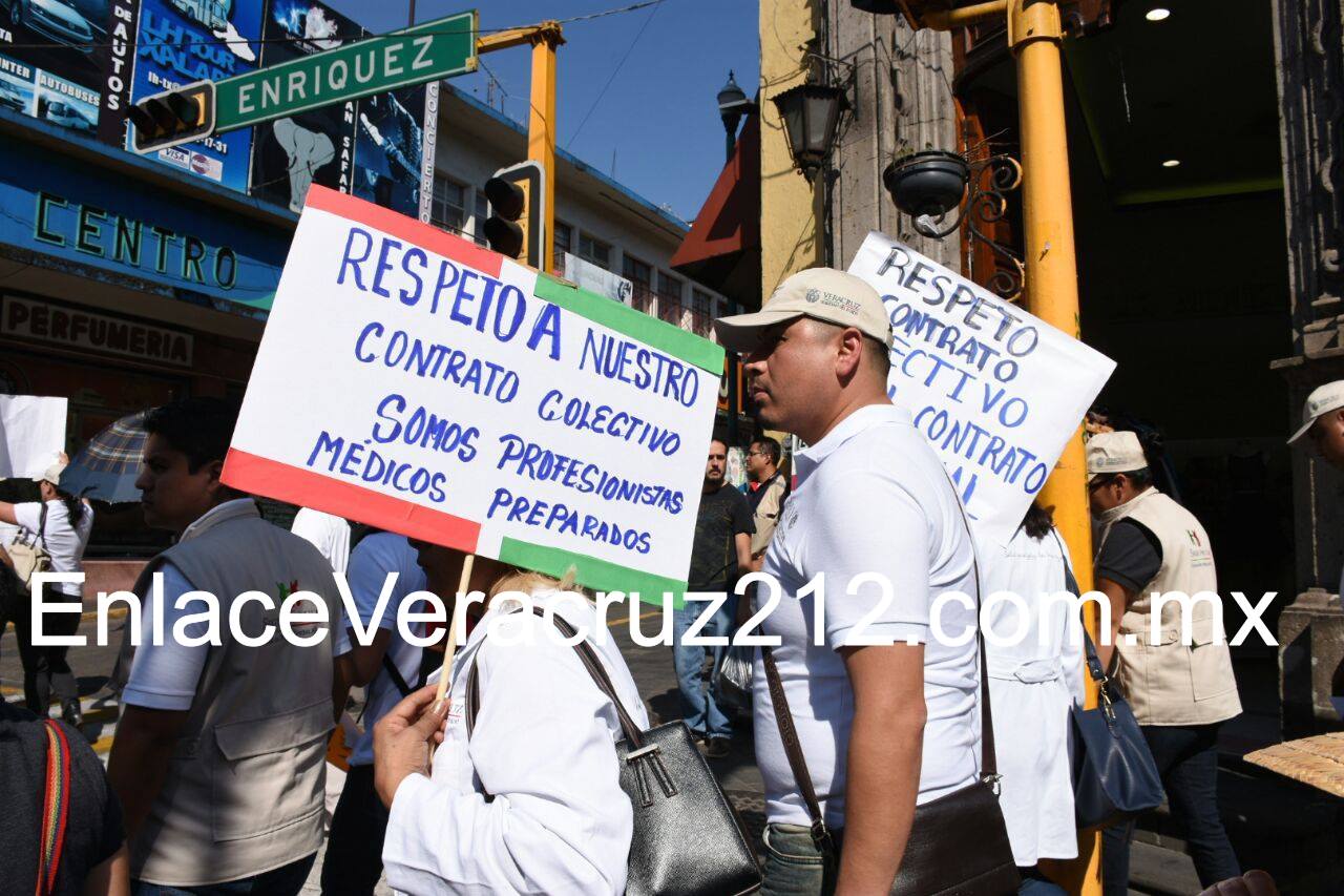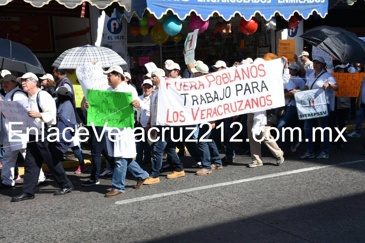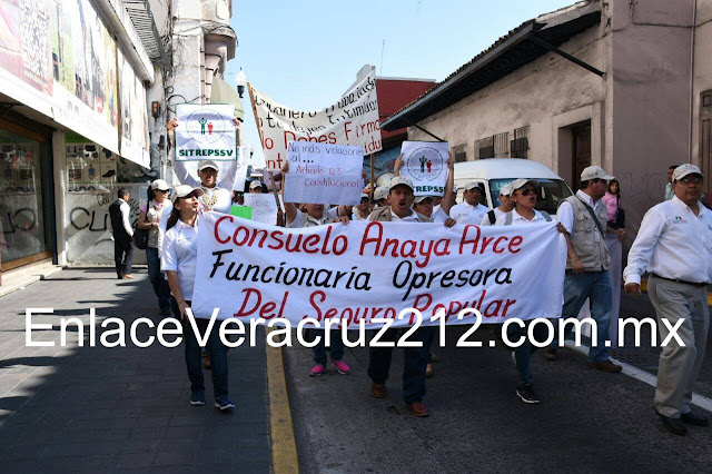 Ex trabajadores del Seguro Popular de todo el estado, realizaron una marcha hacia la plaza Lerdo en contra de los despidos, que dijeron, están poniendo en riesgo la salud de los veracruzanos.