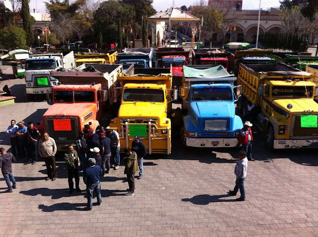 Los conductores de los transportes materialistas pidieron ser recibidos por el presidente municipal para exigirle que deje de abusar del pueblo peroteño y de beneficiar a unos cuantos incluida su propia familia, ya que los choferes de los sindicatos tienen familias y necesidades y es su derecho poder trabajar en las obras locales.