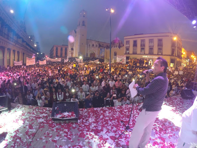 Desde la Plaza Lerdo de Xalapa, AMLO manifestó que “estamos viviendo momentos difíciles, en los cuales se requiere de unidad. Los mexicanos tenemos que unificarnos para que de forma democrática y sin violencia, logremos la regeneración de México”.
