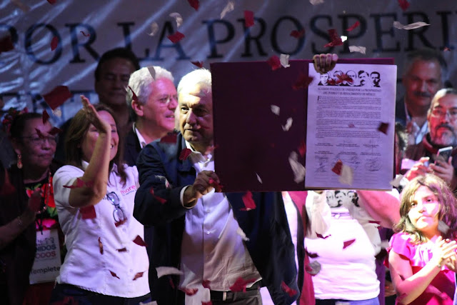 Aun cuando antes de las elecciones presidenciales se dará a conocer el Nuevo Proyecto de Nación 2018-2024, adelantamos que la propuesta se resume en gobernar con rectitud, desterrar la corrupción, abolir la impunidad, actuar con austeridad y destinar lo que se ahorre para financiar el desarrollo del país.