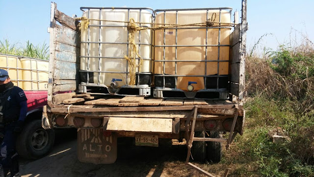 En dicho aseguramiento, realizado por Policías Municipales de Omealca y elementos de la Secretaría de la Defensa Nacional, se encontraron las unidades con bidones de diversas capacidades.