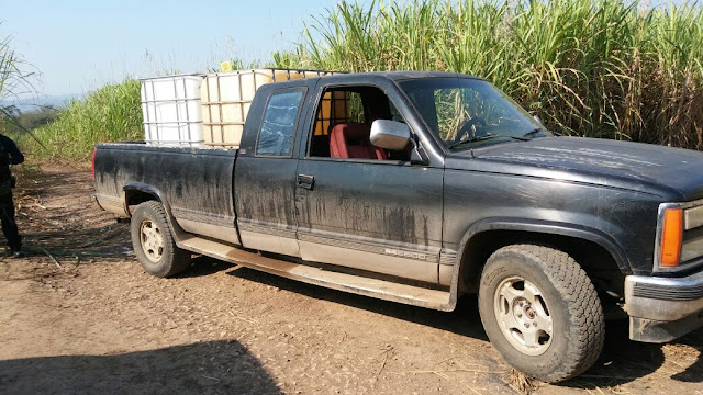 Así mismo, se aseguró una Chevrolet color blanco con placas XV55462m y con razón social José Cabrera, comunidad Joachín, con 4 bidones; de igual manera, una camioneta GMC Sierra color negro de batea, sin placas, y con 2 bidones.