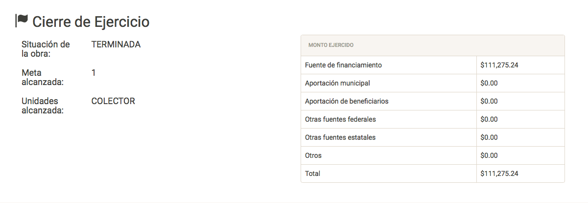 Este medio de comunicación estableció contacto con el Órgano de Fiscalización Superior del Estado de Veracruz, mediante la línea telefónica gratuita de atención a la ciudadanía, donde funcionarios de esa dependencia señalaron que si en el bloque correspondiente al "Cierre de ejercicio" dice "Terminada", esto significa que la obra debe estar concluida y funcionando.