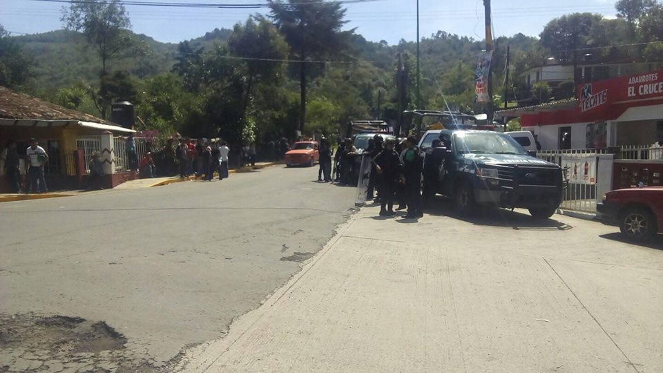 Elementos de seguridad pública del grupo anti motines arribo las primeras horas de este lunes al lugar conocido como el crucero de Tequila para desalojar a los manifestantes que desde el pasado domingo a las 13:00 horas mantenían bloqueados todos los accesos a la sierra de Zongolica.