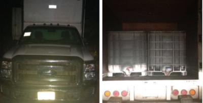 Allí se, en principio se detuvo a dos personas quienes viajaban en un vehículo tipo tractor, marca Dina, color amarillo, el cual llevaba acoplado a semirremolque tipo tanque con placas 392WR4 S.A.F.