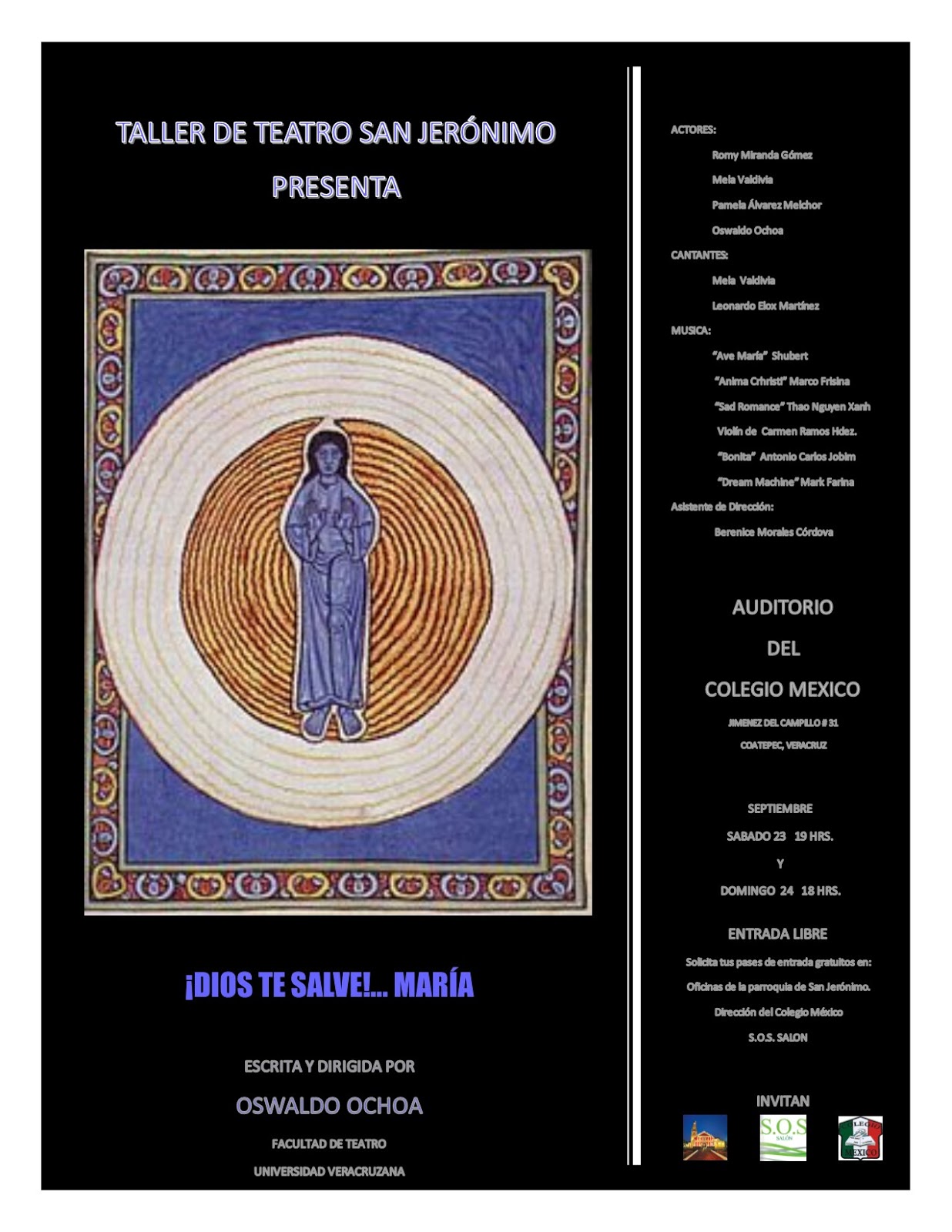 Buenas noches. mediante el presente le hago llegar la información y archivos respectivos alusivos a la obra de teatro ¡Dios te salve!... María.