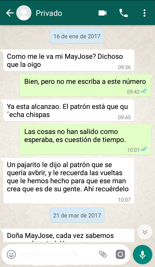 A continuación el intercambio de mensajes después de que fue dictaminado como veraz por un perito de informática forense: