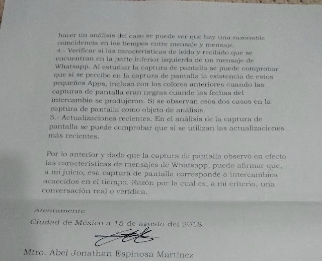 Las capturas de pantalla de un celular, las cuales presumen el diálogo entre la legisladora panista y un miembro de un grupo criminal fueron consideradas como verídicas por el ingeniero en Mecatrónica y redes sociales Abel Jonathan Espinoza, quien sostuvo que se trata de mensajes realizados por medio de la aplicación WhatsApp, los cuales obedecen a una secuencia de tiempo y no registran ningún tipo de alteración o edición en su contenido.