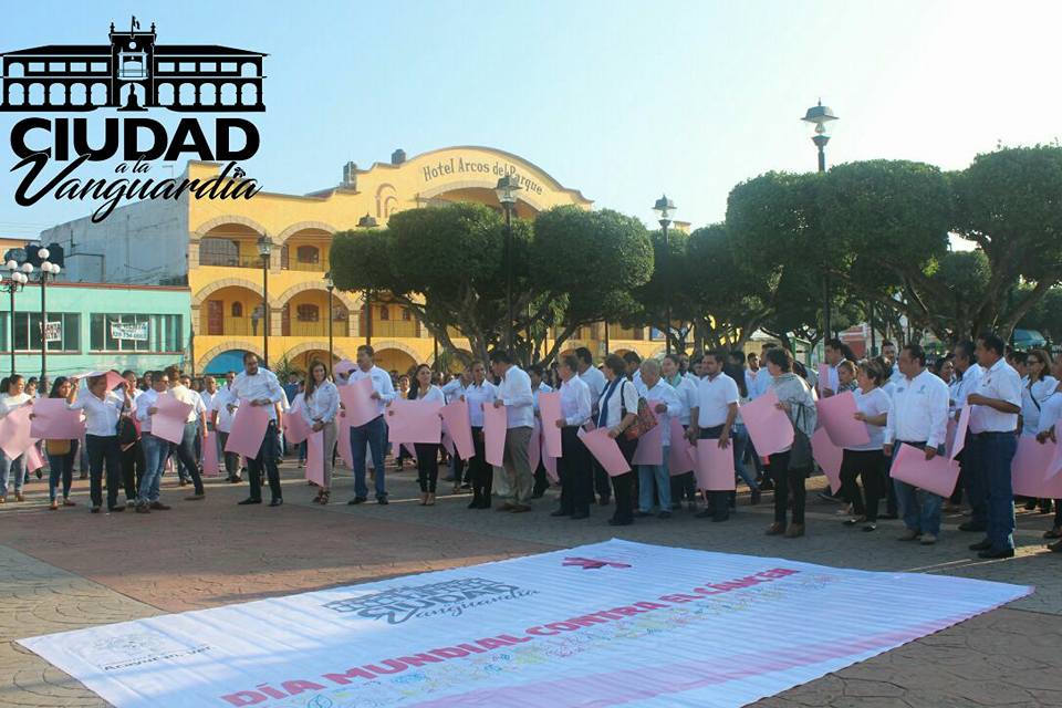 En el marco de la conmemoración el 4 de febrero del Día Mundial contra el Cáncer, que este año llevó el lema “Nosotros podemos, yo puedo”, el gobierno municipal de Acayucan se sumó a la campaña para crear conciencia sobre la importancia de su prevención que ayude a reducir los casos de muertes evitables, con la realización de un mosaico humano en forma de moño rosado, emblema del Día Mundial contra el Cáncer, esto en la explanada del parque Benito Juárez.
