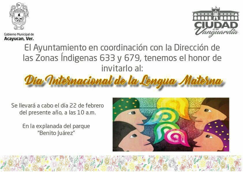 El Ayuntamiento de Acayucan invita al "Día Internacional de la Lengua Materna"
