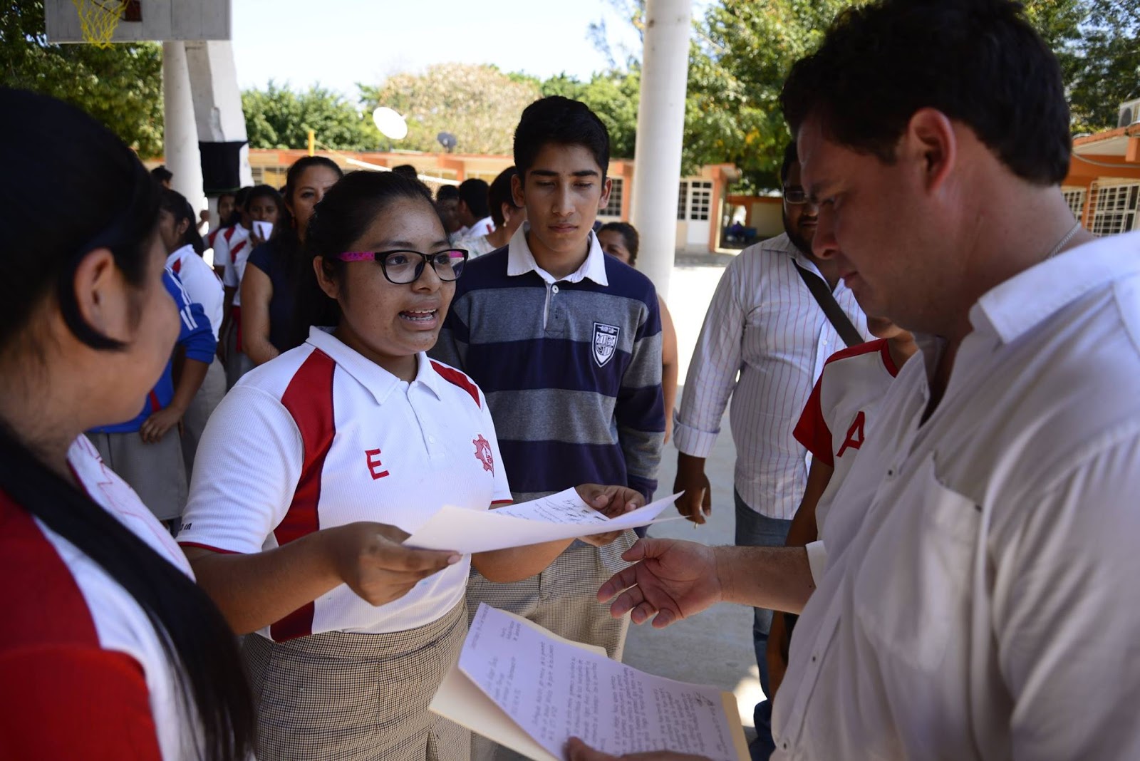 Gran respaldo al sector educativo durante este primer año de gobierno. Compromiso de construir un aula, uniformes a equipos representantes de Olimpiada Escolar y apoyos a esta institución que lleva 36 generaciones egresadas en 40 años de servicio.