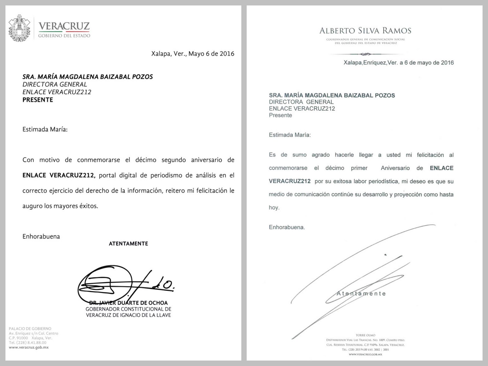 Felicitan Duarte y Silva a EnlaceVeracruz212 por XII aniversario