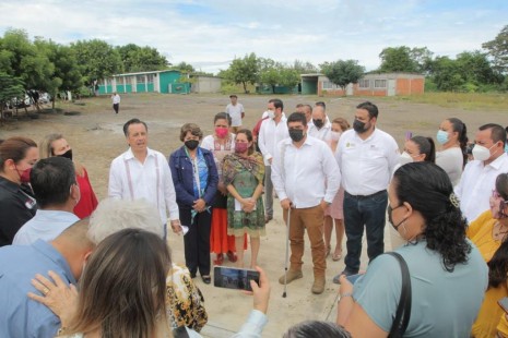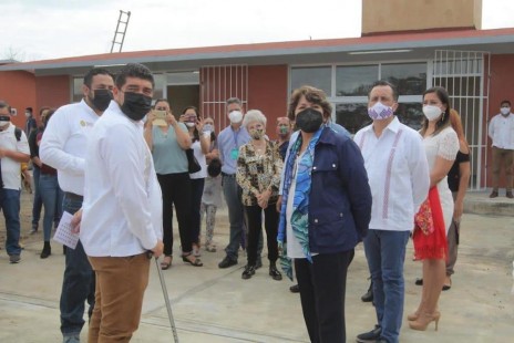Cuitláhuac y Zenyazen en compañía de Delfina Gómez cumplen con obras para mejorar escuelas