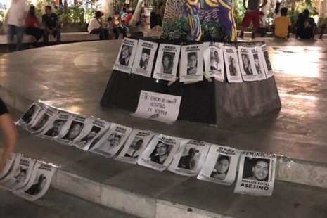 Mujeres tapizan el zócalo de Veracruz con rostros de presuntos feminicidas