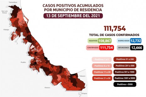 Veracruz acumula 111 mil 754 contagios y 12 mil 666 defunciones por Covid-19