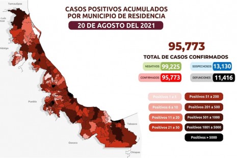 Veracruz acumula 95 mil 773 casos y 11 mil 416 muertes por Covid-19 desde el inicio de la pandemia