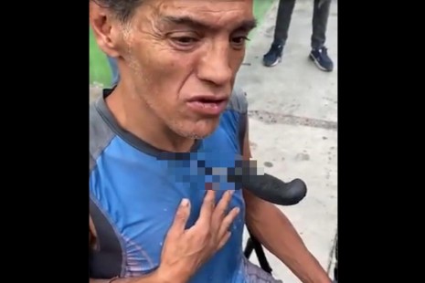 Sujeto caminaba con un cuchillo enterrado en el pecho, su sobrina lo quería matar