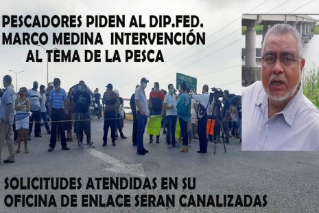 Pescadores manifestados en Tuxpan, solicitan al Diputado Marco Medina su intervención
